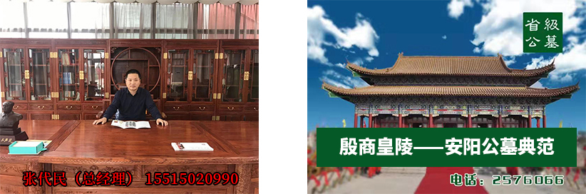 安陽殷商皇陵公墓,2006年2月28日經河南省民政廳批準(豫民文【2006】34號)的合法公墓,國有土地使用證(安國用【51】第1355號),是省重點工程項目。公墓于2008年12月榮獲”河南省十佳陵園”;2009年元月榮獲“安陽誠信之星”;2009年4月榮膺“全犀殯葬行業十佳陵園”稱號,“公墓定位為河南省高端公墓”,“安陽的八寶山”。  公墓坐落于安陽市龍安區,馬投澗鎮郭大岷村村東鳳凰崗上,占地40000余平方米,距市區6公里,交通方便,道路四通八達?! 」褂?006年成立,起步高,選用碑型、碑石都是行業精品,碑石為花崗巖堅硬耐風化,與當地石材完全不同。產品價格分高、中、低三個檔次,滿足不同客戶的需求,同類產品在合法公墓中定價較低,公墓的經營策略是低價入市,讓利客戶,培養市場,公墓每年的下葬率在行業中屬于較高的了,現場參觀一目了然。